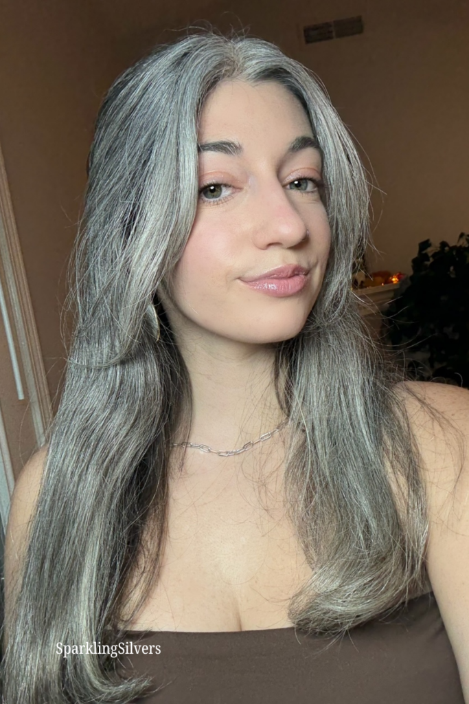 Whether you want to believe it or not, women ARE getting gray hair at a young age! It’s just not talked about. Complete strangers will share their vulnerable stories in the comments on my videos almost daily. Or they will share how they know of women in their lives who have embraced their silvers and how liberating they feel. These stories keep me going because maybe I am helping someone out there realize that they can do it too.